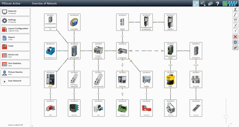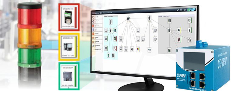 Door PROscan® Active V2 en de PROFINET-INspektor® NT te combineren, kan de volledige status van het netwerk, rechtstreeks op de topologie weergegeven worden.